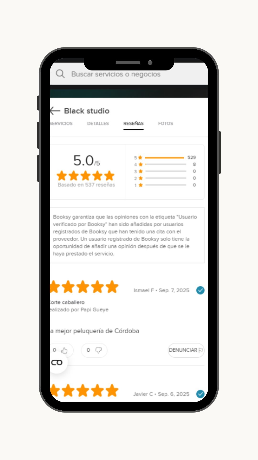 EXCELENTE A base de 75 reseñas Publicado en Asier JIMÉNEZ LARZÁBALTrustindex verifica que la fuente original de la reseña sea Google. Barbería top 💈Publicado en Manuel MurilloTrustindex verifica que la fuente original de la reseña sea Google. Publicado en lola caballero blancoTrustindex verifica que la fuente original de la reseña sea Google. Publicado en TobarichTrustindex verifica que la fuente original de la reseña sea Google. Publicado en a jTrustindex verifica que la fuente original de la reseña sea Google. Publicado en sile dialloTrustindex verifica que la fuente original de la reseña sea Google. Publicado en Pedro Antonio Correa MarinTrustindex verifica que la fuente original de la reseña sea Google. Publicado en Juan Daniel Bocio MonteroTrustindex verifica que la fuente original de la reseña sea Google. Un estudio de 10 con un gran equipo de profesionales. Muy buena atención y dedicación al cliente. Volveré seguro!